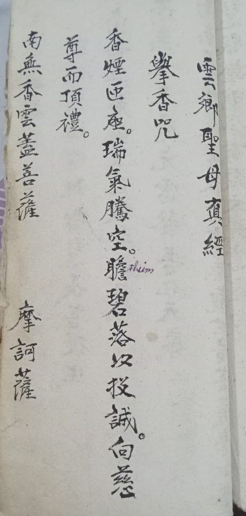 Vân Hương Thánh Mẫu Chân Kinh. 癸巳年玖月上流日奉抄